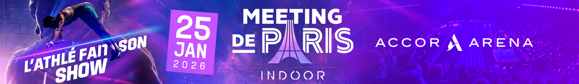 Dimanche 25 janvier 2026 - 15h00 ACCOR ARENADimanche 25 janvier 2026, l’athlétisme est de retour à l’Accor Arena pour la 9ème édition du Meeting de Paris Indoor.